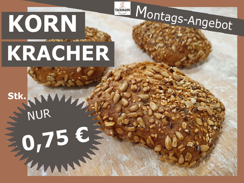 Unsere knackigen Kornkracher im unschlagbaren Montagsangebot. Mitnehmen und genießen.
